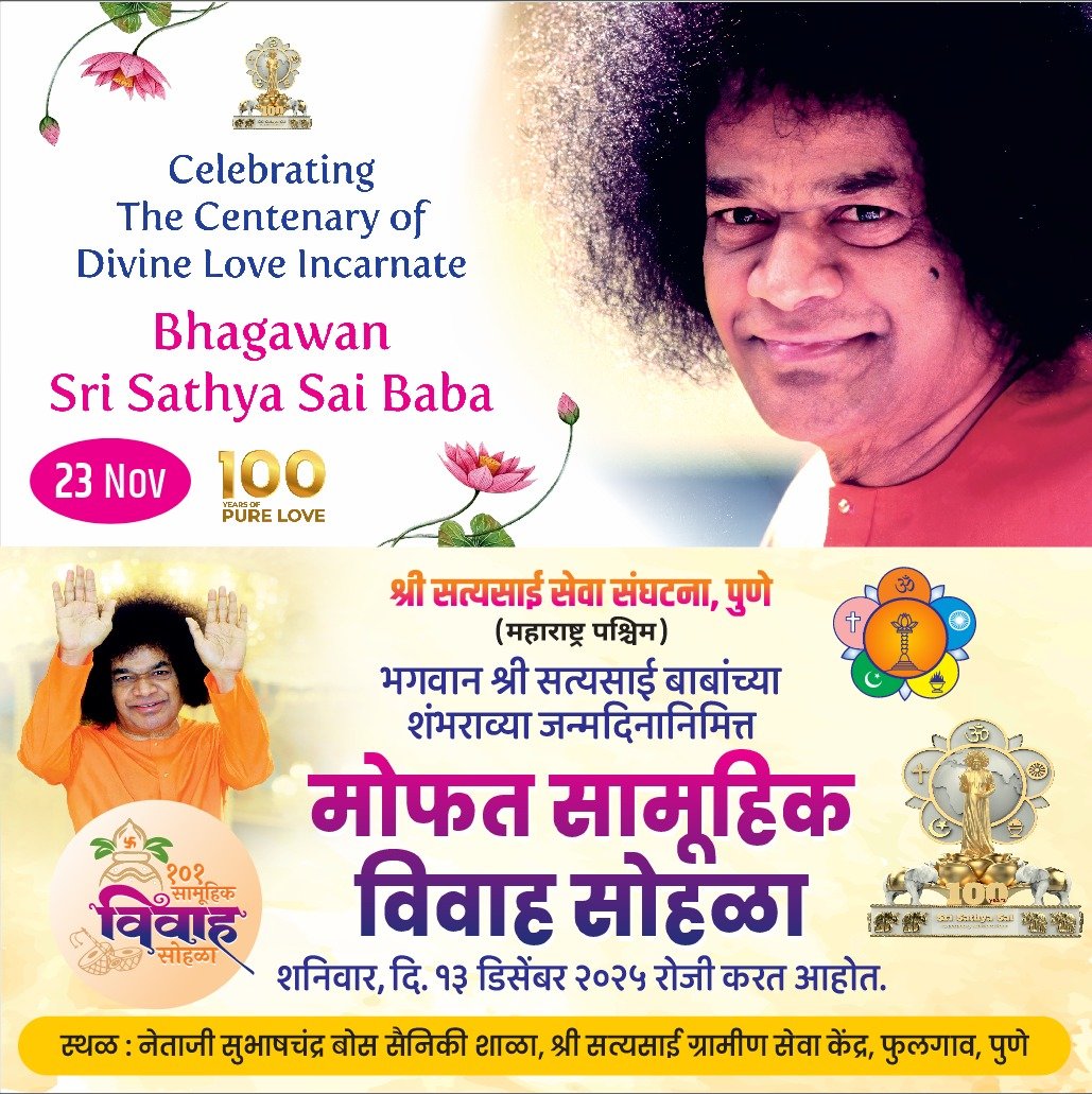 फुलगाव (ता. हवेली) येथील नेताजी सुभाषचंद्र बोस सैनिकी शाळेत श्रीसत्यसाई सेवा संघटना पुणे, महाराष्ट्र पश्चिम यांच्या वतीने भगवान श्रीसत्यसाई बाबांच्या शंभराव्या जन्मदिनानिमित्त शनिवार (दि.१३) डिसेंबर २०२५ रोजी १०१ मोफत सामुहिक विवाह सोहळ्याचे आयोजन केले असल्याची माहिती, फुलगाव समिती प्रमुख सुनिल वागस्कर यांनी दिली.