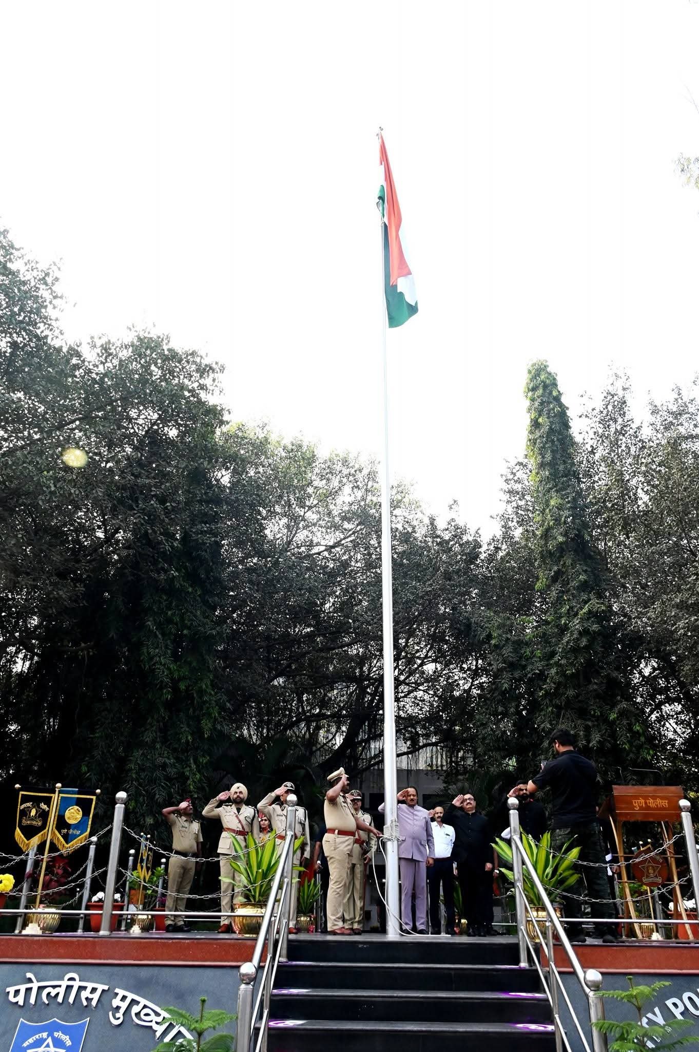 ७७ व्या भारतीय प्रजासत्ताक दिनाचा मुख्य शासकीय सोहळा आज पोलीस संचलन मैदानावर ध्वजारोहण व संचलनासह मुख्य शासकीय समारंभ उत्साहात पार पडला. यावेळी विभागीय आयुक्त डॉ. चंद्रकांत पुलकुंडवार, पुणे पोलीस आयुक्त अमितेश कुमार, पिंपरी चिंचवड पोलीस आयुक्त विनय कुमार चौबे, जिल्हाधिकारी जितेंद्र डुडी, पुणे जिल्हा पोलीस अधिक्षक संदीपसिंह गिल उपस्थित होते.